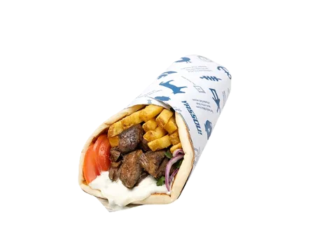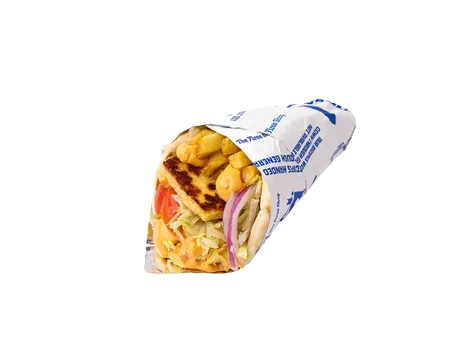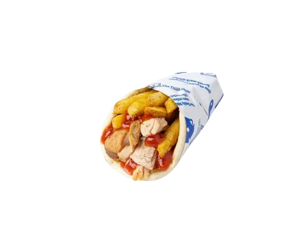 Tzatziki, onion, tomato, parsley, filled with maryland chicken, chips all wrapped in a mini pita bread.