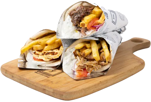 A rich greek yoghurt and cucumber based dip, served with two fluffy pita breads.