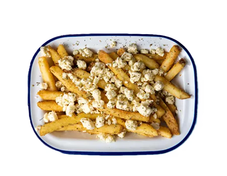 Fresh chips with our signature chicken salt, topped with crumbled feta and oregano.